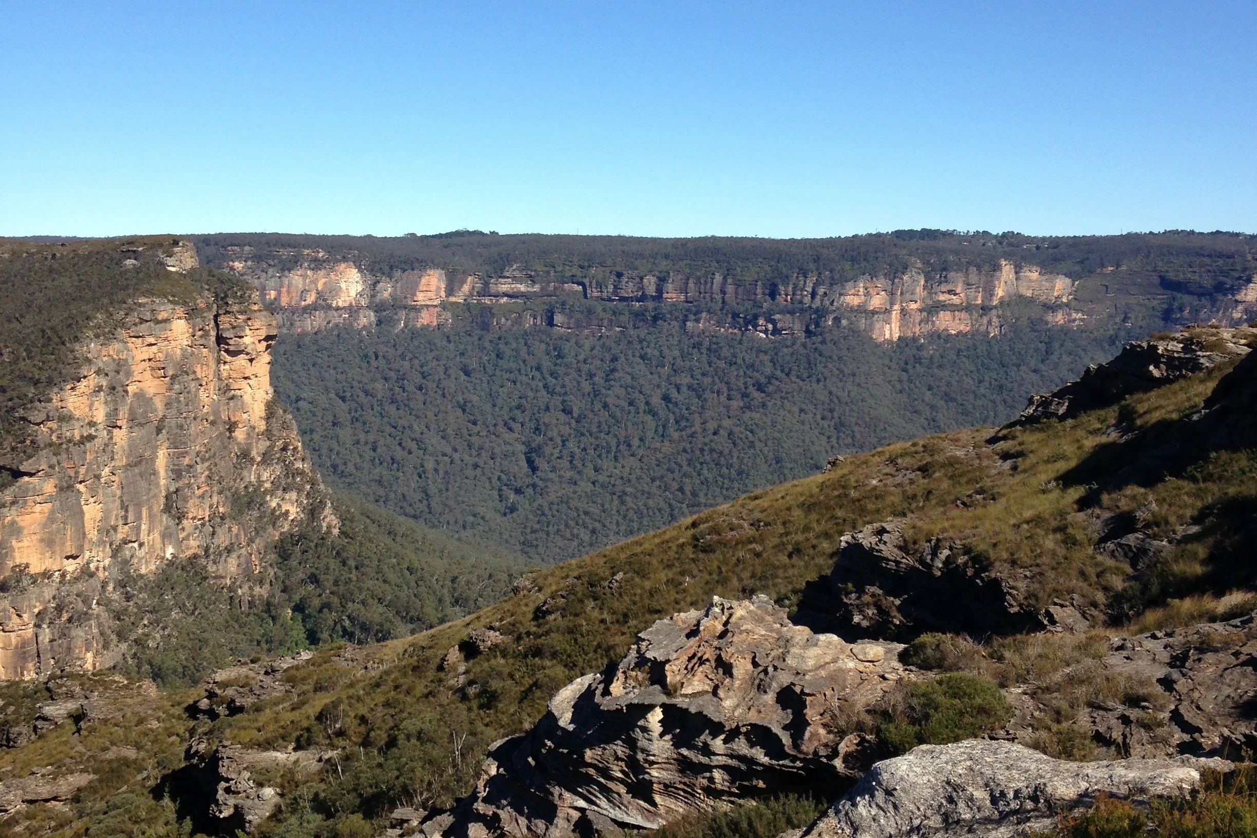 The trail undulates across the plateau, passing the oddly shaped rock outcrops known as The Pinnacles before reaching the ‘Pylon’ itself - a small, distinctive peak named after J.G. Lockley, a journalist who helped save the nearby Blue Gum Forest in the 1930s. From the summit, you’re rewarded with an incredible 360-degree panorama of the Grose Valley, with the golden sandstone walls of Mount Hay and Mount Banks standing like sentinels across the gorge. It’s quiet, expansive, and particularly magic in spring when the wildflowers turn the ridge into a sea of color.