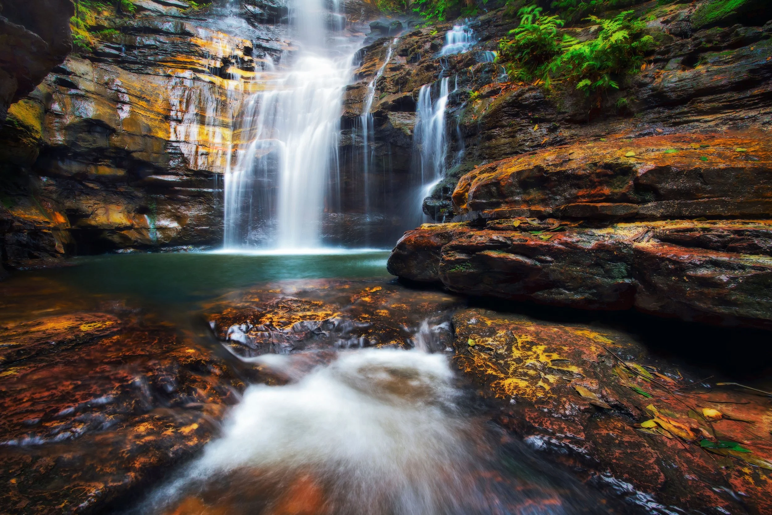 Tucked within the lush Valley of the Waters, this 30-metre tiered waterfall is one of the most photographed spots in the Blue Mountains.